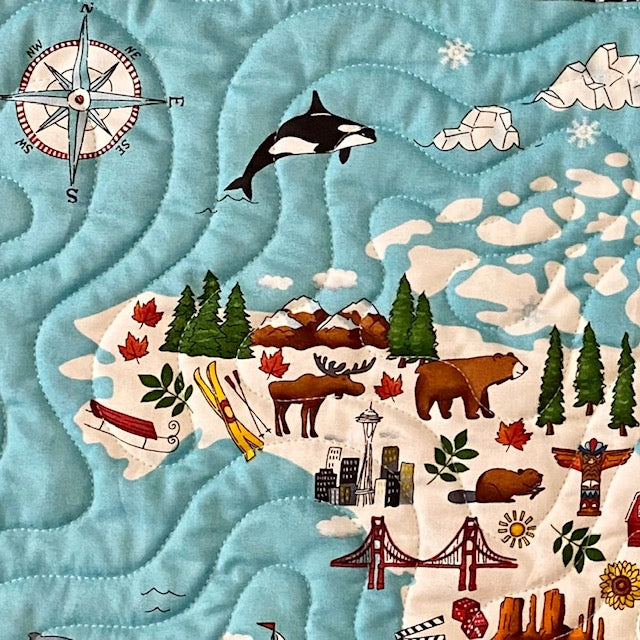 Maybe one day we'll travel the world again! For now - create this quick and easy row quilt featuring a delighful map of the world panel. Kit includes instructions and all fabric for quilt front and binding. 100% cotton. Finished size 42" X 53"