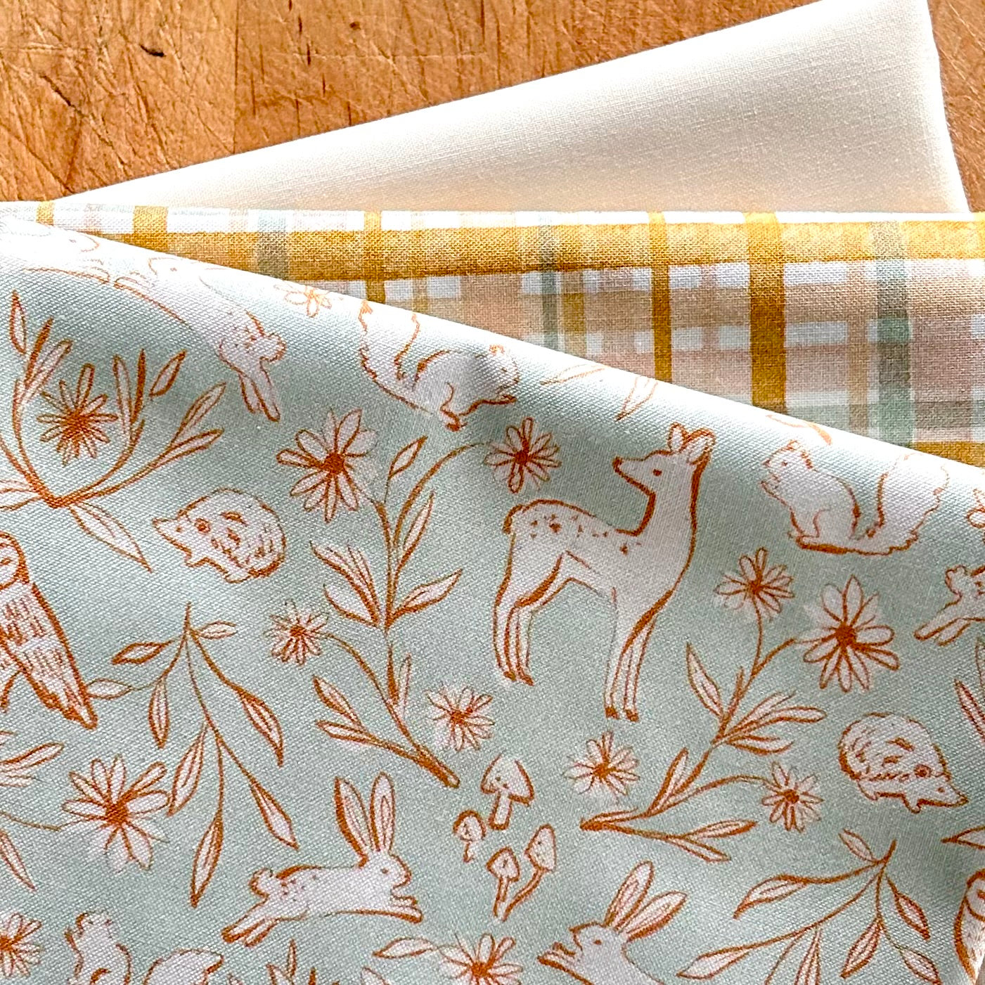 - An Irish chain pattern, warm white and a sweet wee print from Figo Fabrics makes our fresh new quilt. Two colour ways to choose from - Reese soft yellow and Bailey a pale sea foam blue! Cutest plaid print to make bias binding. Kit includes instructions and all fabric for one quilt front and binding.