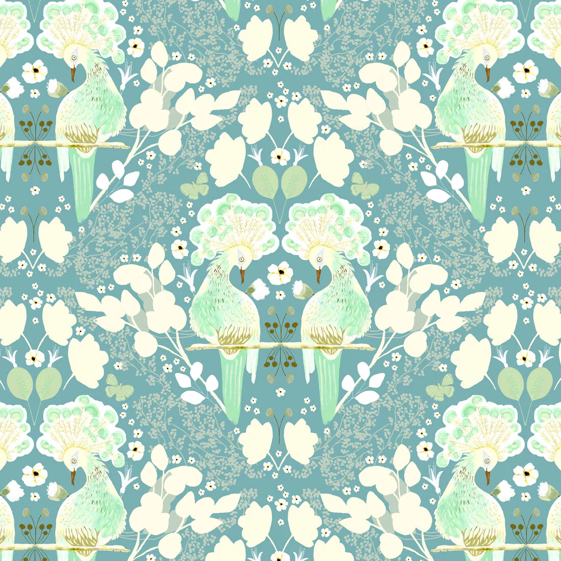 Serenity Blooms by Ginger Deverell for Poppie Cotton Fabrics. An elegant collection featuring birds and butterflies, parakeets, hummingbirds, flowers and blossoms along with a beautiful stripe to finish those quilt edges. The color palette combines mints, teals, various greens and blues, creams, peaches and corals. The sophistication of the design and color elements bring to life the beauties of nature in our wonderful world.