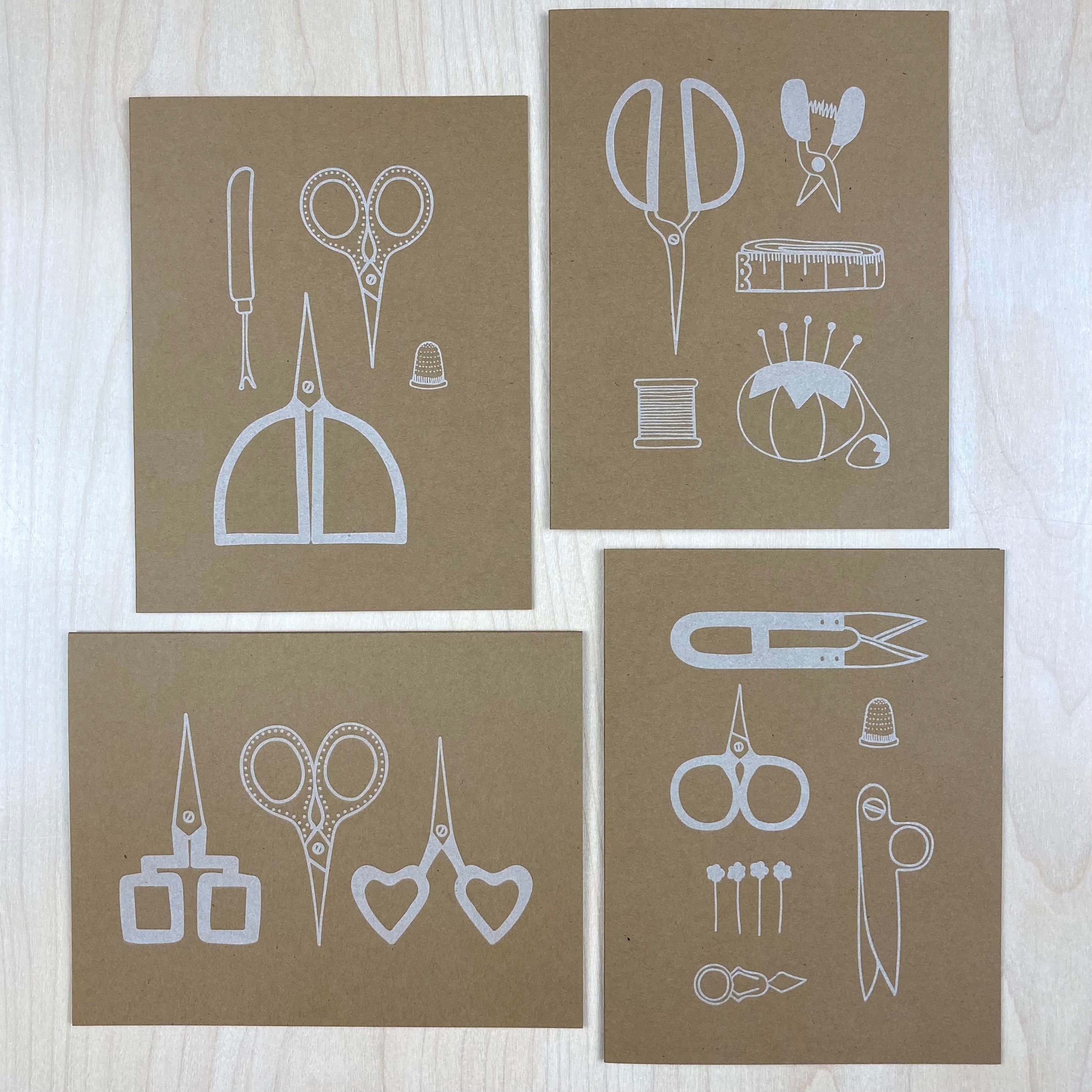 Designs are illustrated by graphic designer Laura Wunderli, and inspired by items in our shop and her own personal sewing collection.