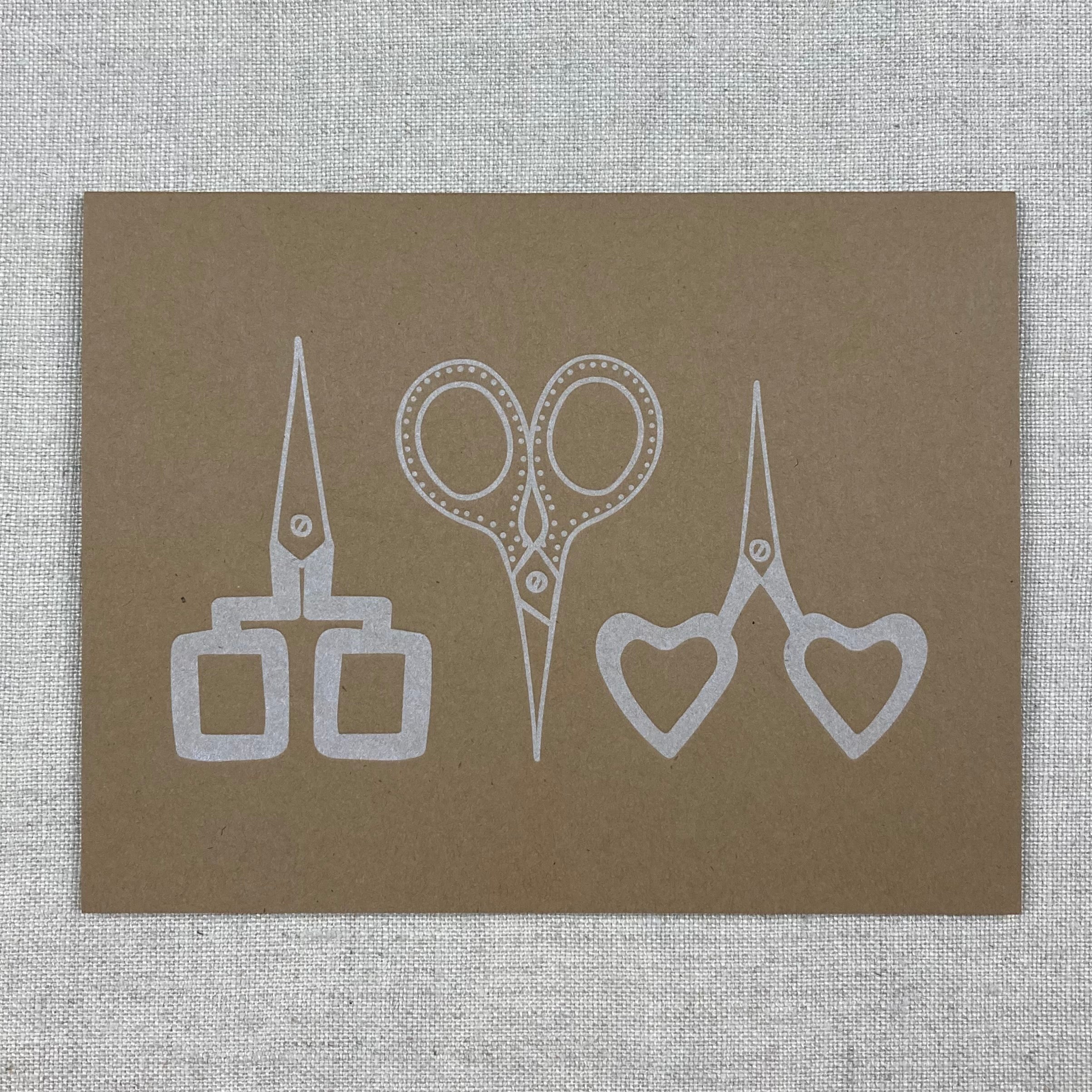 Brown kraft cardstock paper with letterpress printed designs in white ink.
