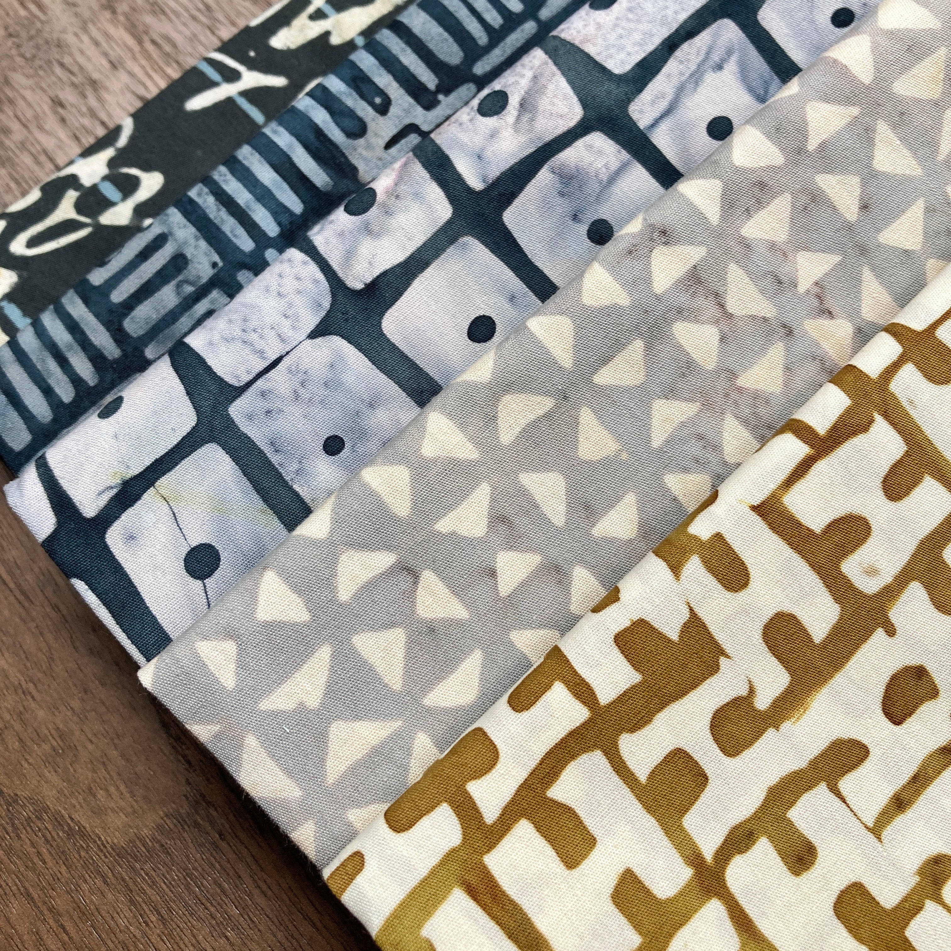 From Marcia about the collection: "This collection emerged from two artist books I have been gradually developing over the years. I am always on the hunt for paper, especially old paper with handwriting and over the years I overlaid paintings and sketches onto the pages not knowing where it would lead. With the opportunity to create my second batik collection I revisited the notebook, pulling inspiration from the pages. The aged papers in the book were so beautiful and became an important element in the overall design. This collection became a spot to sneak in favorites."