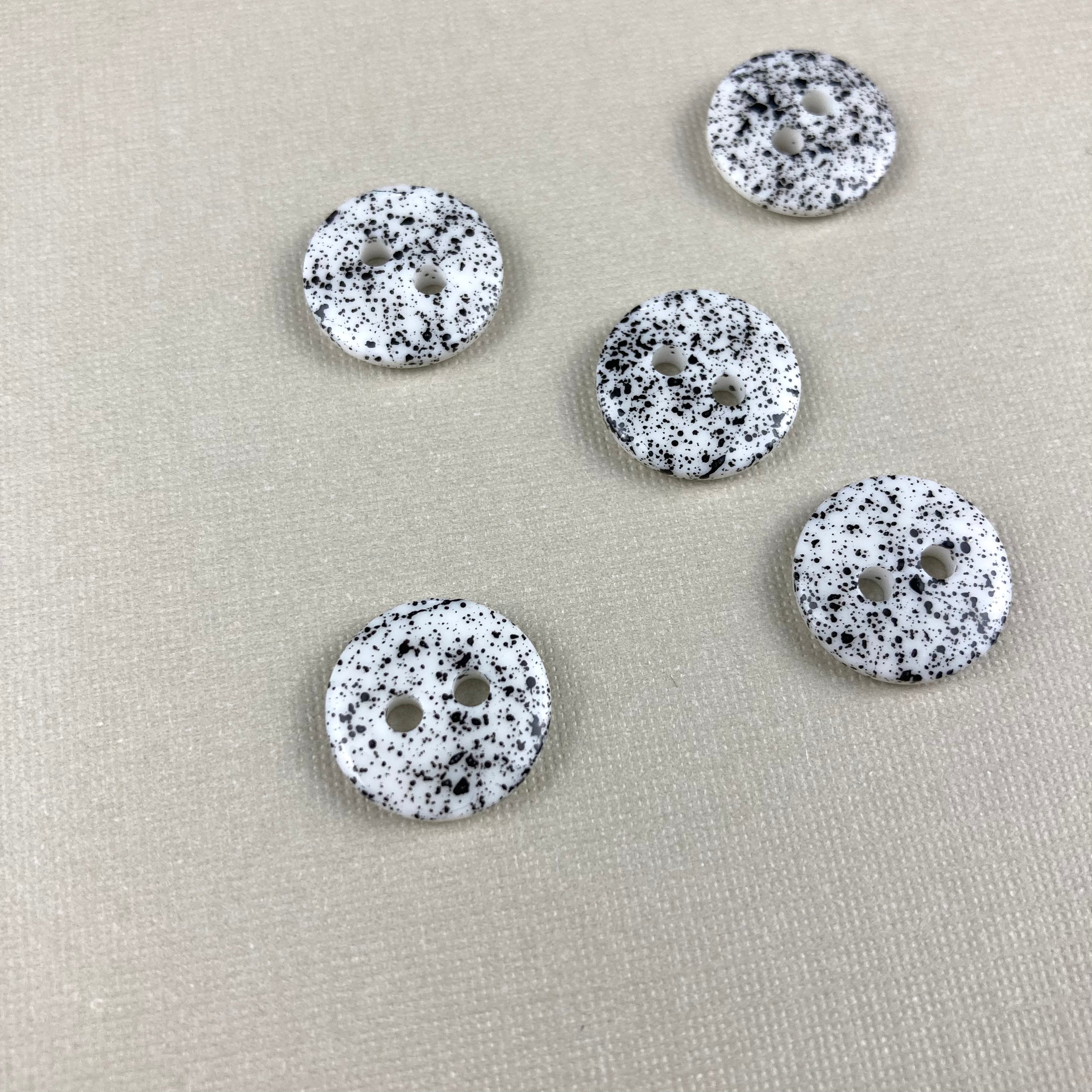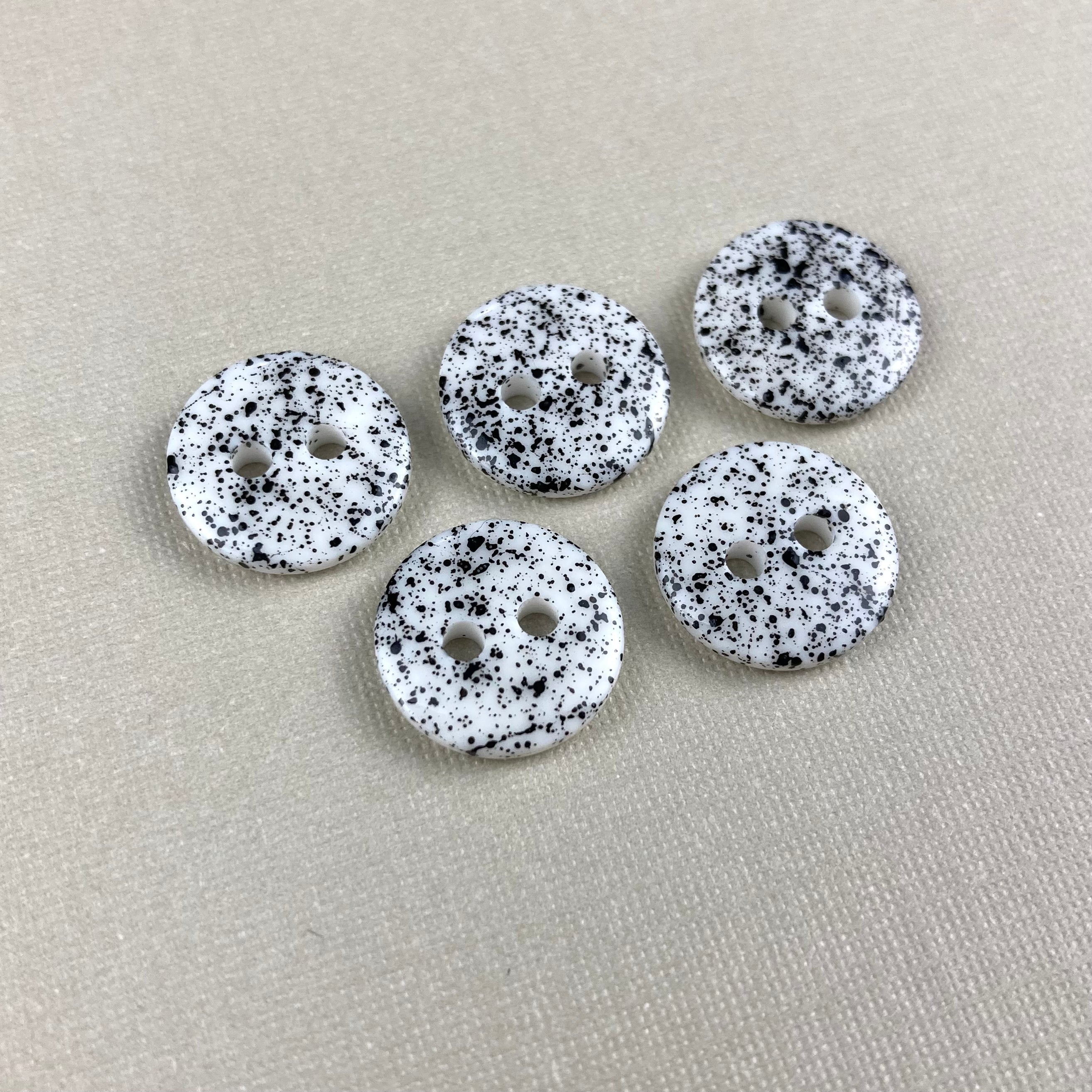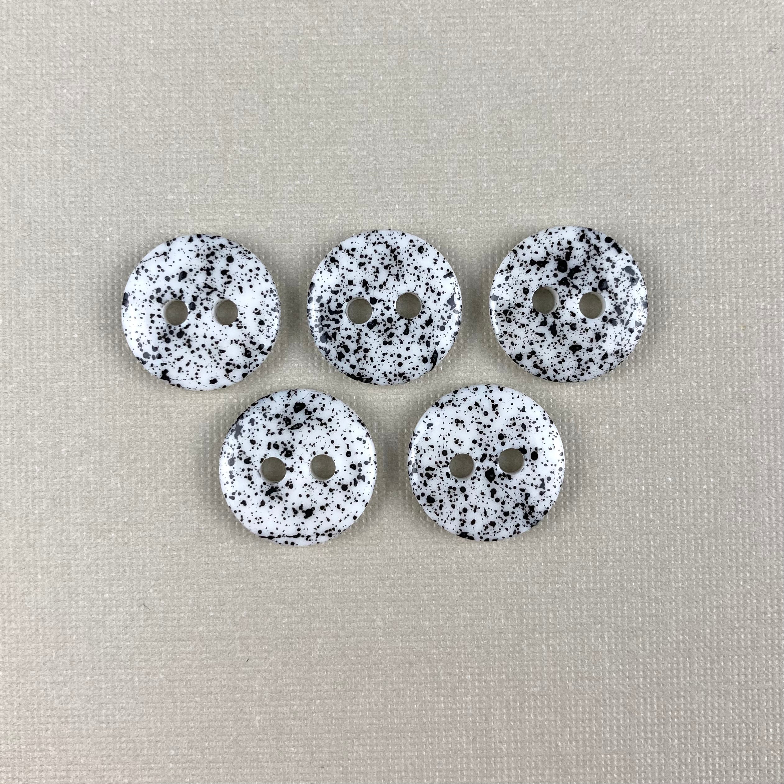 1/2" White with Black Splatter Buttons x 5
