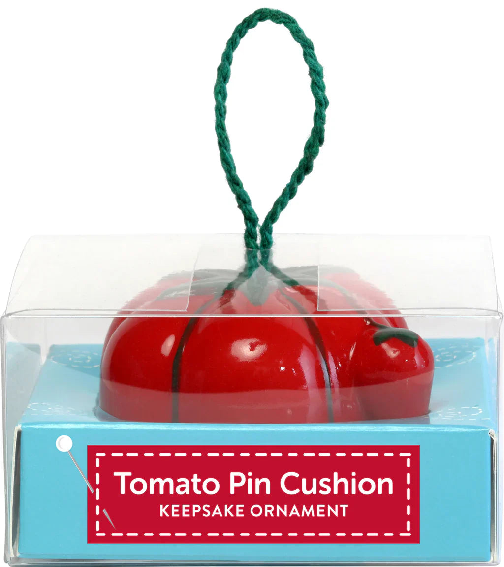 Perfect for gift-giving, the iconic tomato pin cushion ornament is sure to please the sewing and quilting enthusiast. This beautiful keepsake ornament will adorn your tree for the holidays and the charm can be displayed and enjoyed year-round.